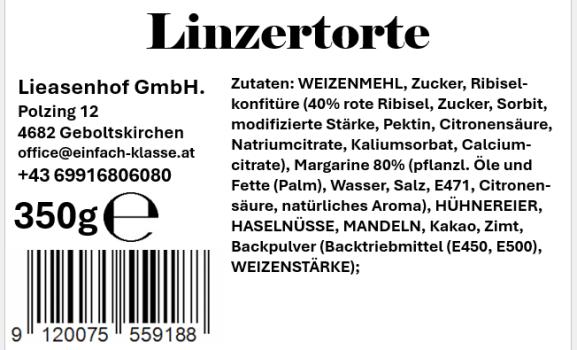 Zutaten: WEIZENMEHL, Zucker, Margarine, Ribiselmarmelade, HÜHNEREIER, HASELNÜSSE, SOJAMEHL, Kakao, Gewürze, Mandeln, Backpulver, Zimt;